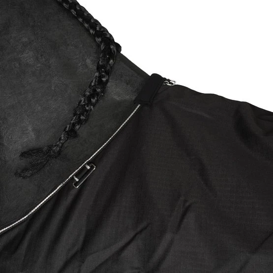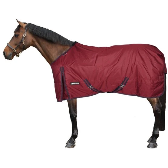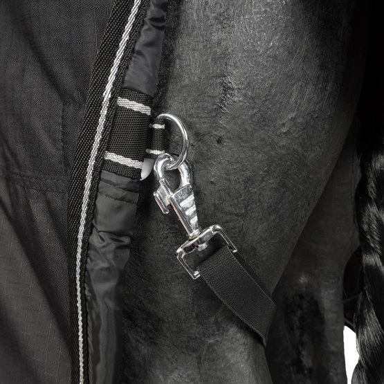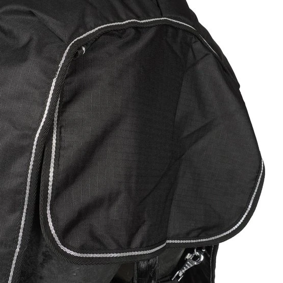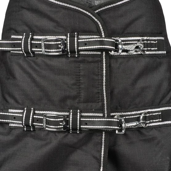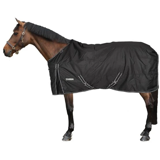 Diese Horka Outdoor Decke Dime 600D kann mit einem losen Hals kombiniert werden. Die Decke hat eine 200 Gramm Füllung und ein Polyesterfutter. Es gibt einen doppelt verstellbaren Verschluss auf der Brust, die Spannbänder haben ein elastisches Ende und Gummianschläge. Der Widerrist ist mit Fell gefüttert und es gibt Ringe, an denen der Hals mit Klettverschluss befestigt werden kann.