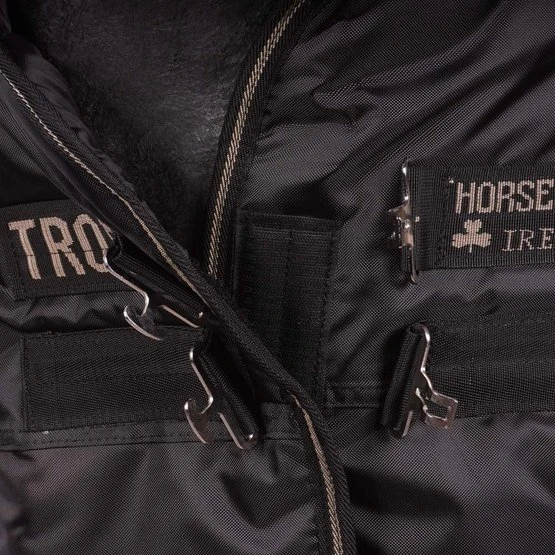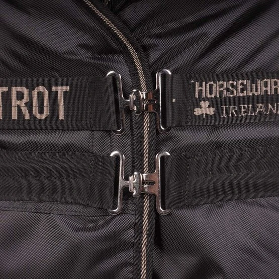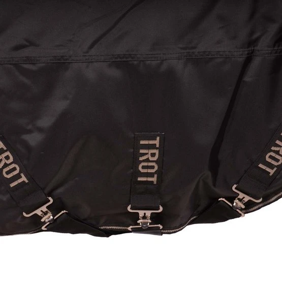 Diese Decke ist spezial für Traberpferde entwickelt. Am Vorderbein ist extra viel Raum. Drei Kreuzgurte verhindern, dass die Decke verrutscht. Innen ist die Decke mit einem antibakteriellen Stoff ausgestattet. Dieser verringert die Anzahl der angehafteten Haare und hilft Allergien und Infektionen vorzubeugen. Die Decke hat eine Füllung von 350 Gramm. Die Decke wird inklusive Halsstück geliefert, dies ist mit 150 Gramm gefüttert.