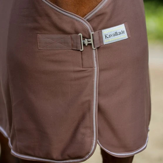 The elegant jersey rug is made of 100 % soft, brushed polyester. At the inside, the material is roughened, absorbs moisture immediately and diverts this to the outside. Through the smooth outer material, hay and straw do not get caught on the rug. Practical rotary hook closure in the chest area, internal removable belly strap, classic cut with back shape for a good fit, deep tail strap.