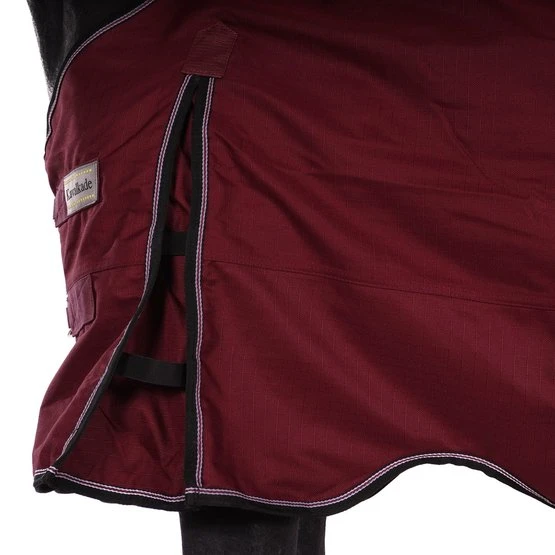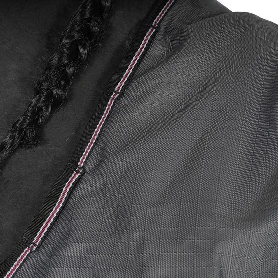 Für diese Decke kann optional ein Halsteil käuflich dazu erworben werden. Die Artikelnummern der Halsteile in den verschiedenen Farben sind: 44717887 (Schwarz), 44717886 (Grau) und 44717885 (Bordeaux). Wenn Sie ein Halsteil dazu erwerben, hat das Halsteil immer eine 100g Füllung. Das Halsteil Alaska IV hat eine ideale Passform und hält durch die Wattefütterung von 100 g den Hals des Pferdes angenehm warm. Wie die Outdoordecke ist auch das Halsteil wind- und wasserfest sowie atmungsaktiv (3000 mm Wassersäule, Atmungsaktivität 3350g/qm). Um ein Verrutschen zu vermeiden, sind an dem Halsteil jeweils zwei Klettverschlüsse an der Seite und zwei an der Halsunterseite angebracht.