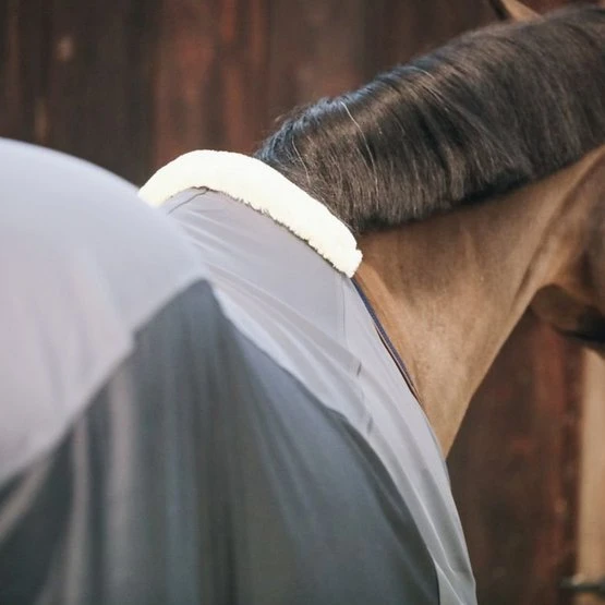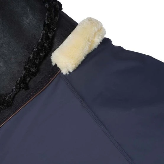 Die Cooler Sheet Softshell sieht luxuriös aus und ist der ideale Stallgefährte bei Turnieren oder für den Transport. Sie wurde speziell entwickelt, um den Pferderücken vor kaltem Wind zu schützen und wirkt wie eine zweite Haut. Sie ist sehr atmungsaktiv und bietet Ihrem Pferd höchsten Komfort. Im unteren Teil befindet sich ein Netzgewebe, das ebenfalls sehr atmungsaktiv ist und verhindert, dass Fliegen das Pferd berühren. Das künstliche Schaffell schützt den Widerrist vor Scheuern und Druck. Die Cooler SheetSoftshell verfügt über zwei Vorderverschlüsse und einen starken Klettverschluss vor der Brust, die mit Kunstleder verstärkt sind. Die beiden Gurte sind verstellbar und ebenfalls mit Kunstleder verstärkt. Sie sind abnehmbar und an der Innenseite der Decke befestigt. Es gibt einen elastischen Nylongurt, der hilft, die Decke an ihrem Platz zu halten. Dieser ist abnehmbar und hat eine einfach zu reinigende Kunststoffabdeckung. Maschinenwaschbar bei 30°, kein Trockner.