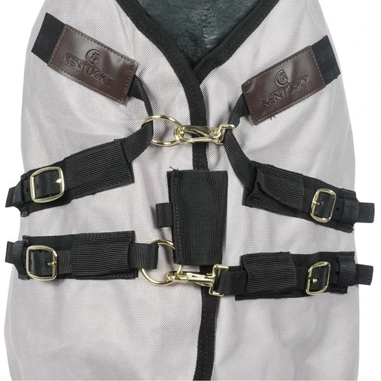 Die Fliegendecke bietet hervorragenden Schutz vor jedem Insekt. Dadurch eignet sich die Decke sehr gut für Pferde mit empfindlicher Haut. Die Decke ist mit einem speziellen Dreipunktverschluss ausgestattet. Dieser Verschluss reduziert den Druck auf Brust und Widerrist und sorgt für Komfort beim Grasen. Für zusätzlichen Schutz gibt es ein Nackenteil an der Decke.