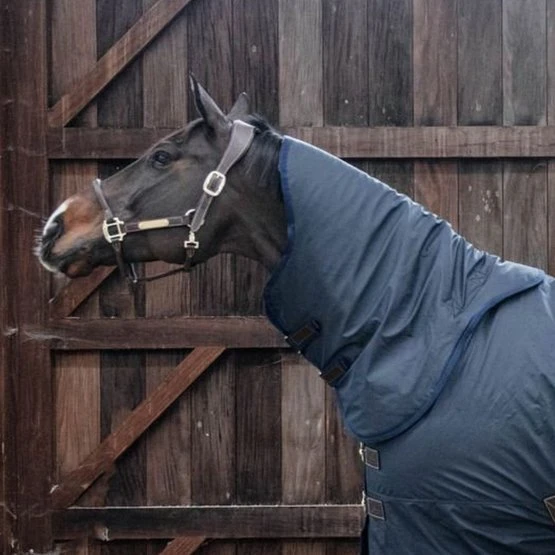 DasHalsteil Allwetter Hurricane wird in Kombination mit unserenWeidedecken Allwetter Hurricane verwendet. Esist in 0 g und 150 g erhältlich, um den Bedürfnissen Ihres Pferdes gerecht zu werden,und lässt sich dank starker Klettverschlüsse mit Ösen leicht anbringen. Dank der 100% wasser-und winddichten Außenseite ist das Halsteil robustund daher für Pferde geeignet, die ganztägig auf der Weide stehen