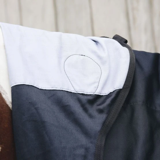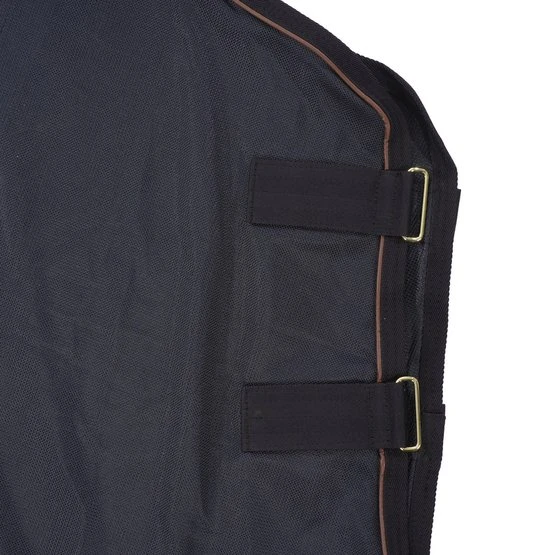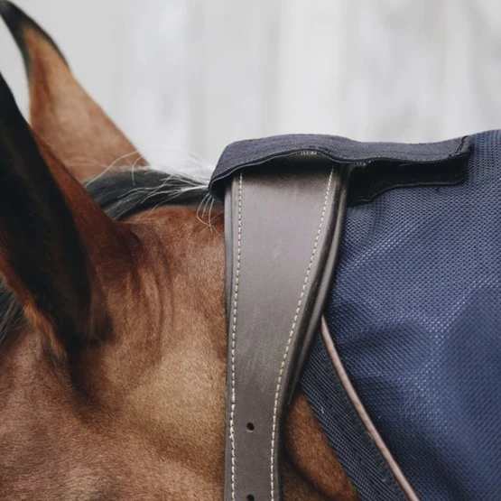 Nach der Entwicklung unserer hoch innovativen magnetischen Decke aus Recuptex haben wir nun das passende Stück für den Hals entwickelt, das perfekt zu dieser Decke passt. Das Halsstück verwendet die gleiche Recuptex-Gewebetechnologie, die sich als die modernste verfügbare Technik erwiesen hat. Basierend auf der Bekaert BEKINOX®-Technologieenthält es feinstes Inox-Garn (eine Edelstahlfaser), das in das Gewebe eingewebt wird. So entsteht ein Faraday-Käfig, der die im Körper des Pferdes erzeugten Magnetfelder reflektiert. Die Erhaltung dieser Felder regt die Durchblutung und den Sauerstofffluss an. Gleichzeitig wird so auch der Erholungsprozess in einer natürlichen Schutzumgebung beschleunigt.Das Halsstück besteht aus einem sehr widerstandfähigen Netzgewebe, das sowohl im Sommer als auch im Winter verwendet werden kann. Es ist ideal, um die Muskeln der Pferde vor und nach dem Reiten zu entspannen und kann auch über Nacht sehr gut auf dem Pferd gelassen werden. Wir empfehlen, das Halsstück zu Beginn ca. eine Stunde zu benutzen und die Anzahl der Stunden auf dem Pferd in den nächsten Tagen allmählich zu erhöhen. So können die Pferde sich an den entstehenden Kribbeleffekt gewöhnen. Das Halsstück kann mit einer einfachen Schnalle an der Decke befestigt werden und hat auch zwei starke Klettverschlüsse.Maschinenwaschbar bei 30°, kein Trockner.
