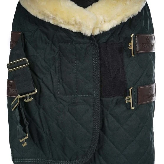 Die Showdecke hat eine Füllung von 160 Gramm und ist von hoher Qualität. Die Innenseite ist mit künstlicher Kaninchenhaut ausgekleidet, um ein ultraweiches Gefühl auf der Haut zu erzielen und ein Scheuern an Brust oder Schultern zu verhindern. Das künstliche Kaninchenfell (100% tierfreundlich) erzeugt kleine Lufteinschlüsse, die die Körperwärme des Pferdes erfassen und speichern. Die weichen Haare des künstlichen Kaninchenfells erhöhen den Glanz des Pferdemantels. Dank des hohen Wärme-Gewichts-Verhältnisses bietet diese Decke maximalen Komfort. Die Kunstwolle schützt den Widerrist und bedeckt die gesamte Kante um Hals und Brust, um Reibung und Druckstellen zu vermeiden und mehr Komfort zu bieten. Dieser zusätzliche Wollbesatz sorgt für einen äußerst edlen Look. Das Waffelmotiv auf der Außenseite macht es den Pferden sehr schwer, die Decke zu zerbrechen. Das Obermaterial besteht aus hochfestem 600D-Polyester. An der Vorderseite wird die Decke mit 2 einfachen verstellbaren Brustverschlüssen geschlossen, die sorgfältig mit Kunstleder versehen sind. Die beiden Kreuzschienen sind ebenfalls verstellbar und mit Leder versehen. Diese sind auch vollständig abnehmbar, wenn Sie keine Bauchgurte verwenden möchten. Der Gesäßverschluss besteht aus einem dicken Gummiband mit einer Kunststoffabdeckung, wodurch das Waschen sehr einfach ist. Auf beiden Seiten wurde eine Schnalle angebracht, damit der Gesäßverschluss leicht entfernt werden kann. Die Showdecke kann in der Waschmaschine bei 30 ° ohne Trockner gewaschen werden.
