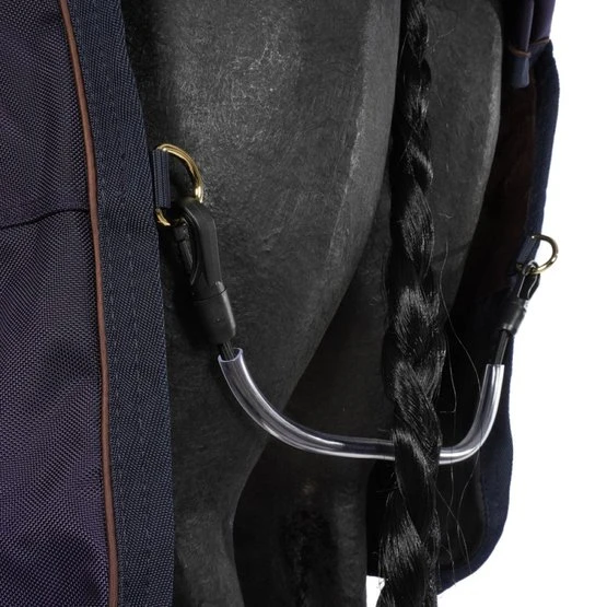 Die Waterproof Pro hat einen 1680D-Außenstoff im Canvas-Look. Dieses Äußere aus Polyester ist sehr stabil, langlebig und schmutzabweisend. Dank der wasserdichten PU-Beschichtung (ISO 10.000 mm) ist ein trockenes Pferd garantiert. Die 160 g-Füllung ist eine PES-Faserfüllung, die dank der mehreren Schichten, in denen die Luft zirkulieren kann, warm und atmungsaktiv ist. Die Innenseite der Weidedecke Allwetter Waterproof Pro ist mit unserem charakteristischen künstlichen Kaninchenfell ausgekleidet. Dieses verhindert Scheuern und wirkt als zusätzliche Isolierung, da es die Körperwärme des Pferdes einfängt und speichert.