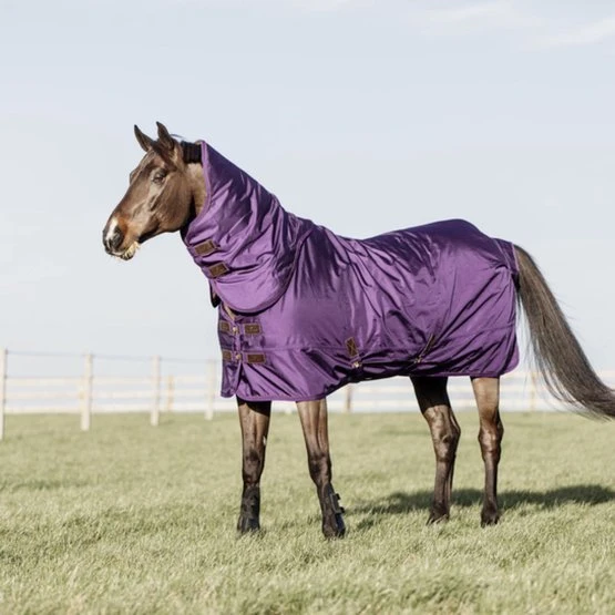 Der Oberstoff der Decke hat eine Canvas-Optik aus 1680D Polyester. Das Äußere ist daher sehr stark, langlebig und schmutzabweisend. Dank der wasserdichten PU-Beschichtung (ISO 10.000 mm) bleibt Ihr Pferd immer trocken. Die 160-Gramm-Füllung ist PES-Faserfüllung, dieses Material ist warm und atmungsaktiv dank der mehreren Schichten, in denen die Luft zirkulieren kann. Die Innenseite der Decke ist mit unserem bekannten künstlichen Kaninchenfell ausgekleidet. Das Futter verhindert Scheuern und wirkt neben der Faserfüllung bereits als zusätzliche Isolierschicht.