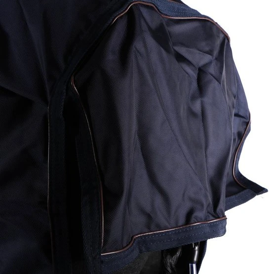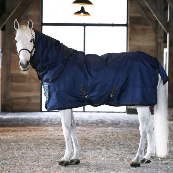 Die Turnout Rug All Weather hat eine Füllung von 300gund kann perfekt als Regendecke-/ Outdoordeckeverwendet werden. Das Außenmaterial besteht aus einem High Tenacity Polyester und hat 1680 Denier, dadurch ist die Decke sehr robust, langlebig und schmutzabweisend. Die wasserdichte und atmungsaktive PU-Schicht macht die Decke resistent gegen sämtliche Wetterbedingungen.Die typischen Reibungspunkte sind mit dem künstlichen Kaninchenfell unterlegt, dadurch bietet die Decke bestmöglichen Komfort. Die Turnout Rug All Weather hat zwei Frontverschlüsse an der Brust, eine Bauchkreuzbegurtung und einem Schweifriemen mit einem Hygieneüberzug.Das abnehmbare Halsteil kann separat dazu gekauft werden und hat eine perfekte Passform. Sie ist ausgestattet mit vier starken Klettverschlüssen, wodurch das Halsteil an der Decke befestigt wird. Durch zwei weitere Klettverschlüsse kann das Halsteil verschlossen werden. Das Halsteil ist erhältlich mit 0g oder 150g Füllung. Auch im Halsteil sind die Reibungspunkte, wie hinter den Ohren, mit dem künstlichen Kaninchenfell unterlegt, um ein Aufreiben zu verhindern.Durch die braune Biese und den besonderen Details aus dem Lederimitat wirkt die Decke einzigartig schick und edel. Die Decke ist maschinenwaschbar bei 30° (Kein Trockner).