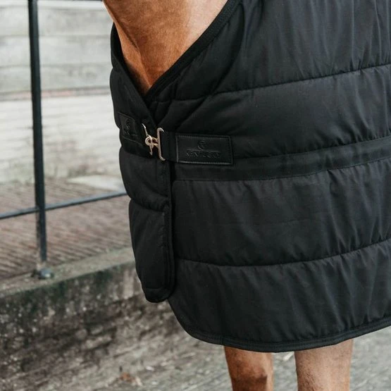 Diese hautfreundliche Unterdecke hat eine Füllung von 150 g und der hintere Teil ist mit künstlichem Kaninchenfell bedeckt. Das künstliche Kaninchenfellfutter sorgt für zusätzliche Wärme, da es winzige Luftblasen erzeugt, die die Körperwärme des Pferdes einfangen. Es gibt auch ein äußerst angenehmes Gefühl und bringt das Fell Ihres Pferdes zum Leuchten. Das künstliche Kaninchenfell verhindert Scheuern und die Decke hat einen klassischen Brustverschluss mit Kentucky-Logo in Kombination mit einem Klettverschluss, um die Decke an Ort und Stelle zu halten. Auf der Rückseite hat die Unterdecke zwei D-Ringe, an denen ein Heckgurt befestigt werden kann. Diese Decke ist ideal, um sie bei Kälte unter Ihre Stall- oder Außendecke zu legen. Die Decke ist bei 30 ° maschinenwaschbar, kein Trockner.