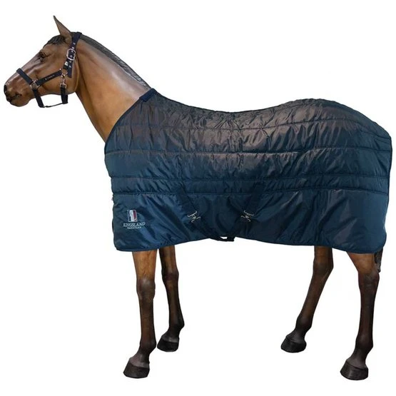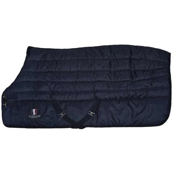 Doppelreihig gesteppte Stalldecke. 200g Polyesterfüllung. Futter aus 100 % weichem Polyester. Obermaterial aus 100 % Polyester 210D. Wasserabweisend. Atmungsaktiv. Waschmaschinenfest. Zwei Verschlussschnallen vorne. Weicher Fleecerand oben am Hals.