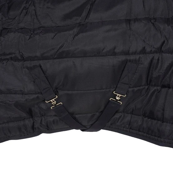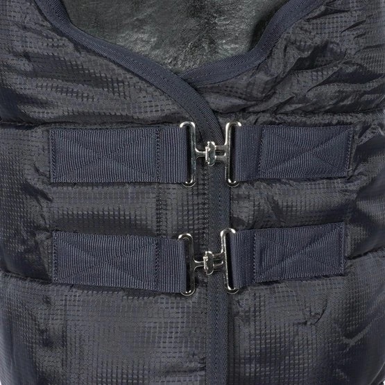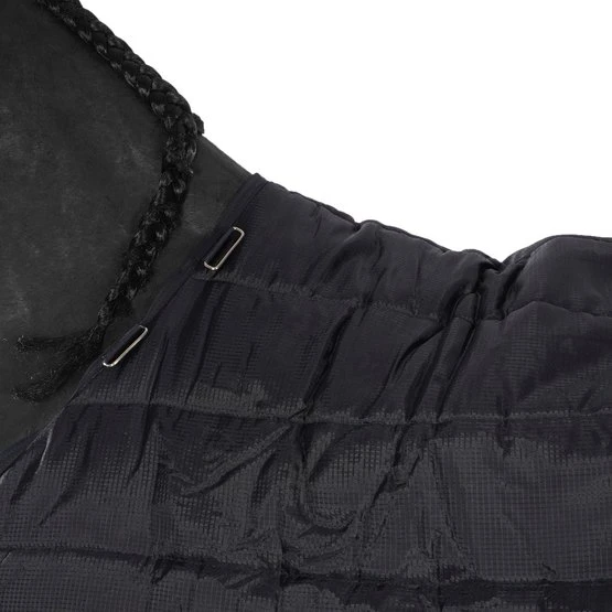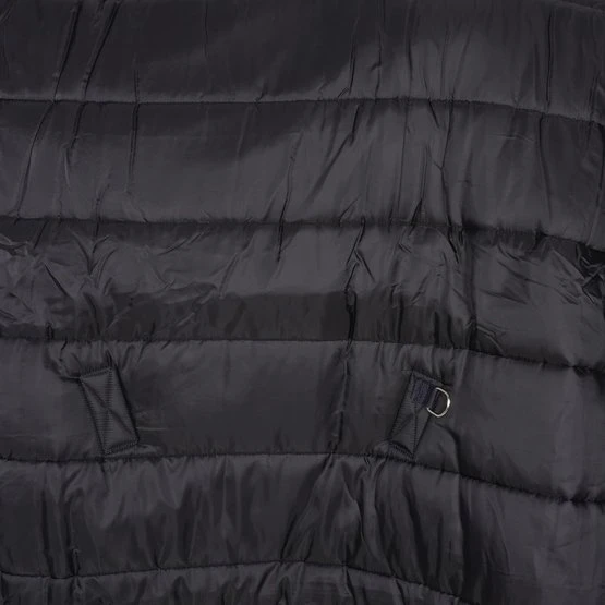 Leichte stabile Decke mit abnehmbarem Hals. Einfache Befestigung des Halsstücks. 300g/m2 Isolierdecke und Nacken. Futter aus 100 % Polyester. 100% Polyester Ripstop 210D Außenmaterial. Wasserabweisend. Atmungsaktiv. Waschmaschinenfest.