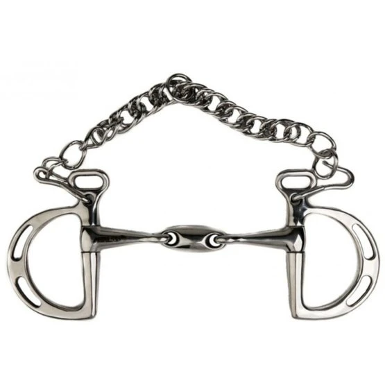 Aus Edelstahl, massives Mundstück, doppelt gebrochen mit ovalem Zwischenstück.