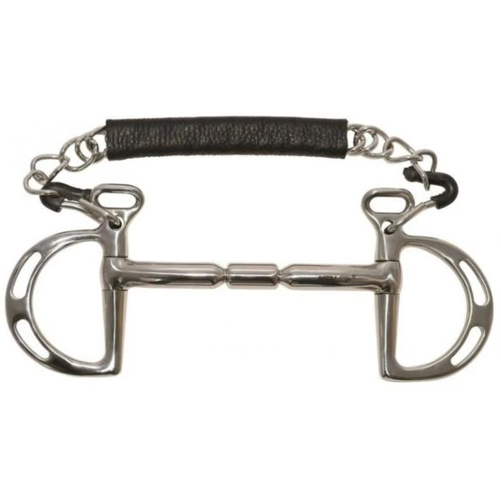 Edelstahl, gerades Mundstück mit drehbarem Mittelstück, lederbezogene Panzerkette.