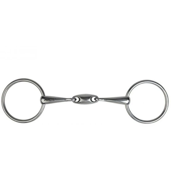 Aus Edelstahl, doppelt gebrochen mit ovalem Zwischenstück, massives Mundstück.