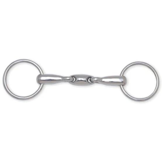 Aus Edelstahl, doppelt gebrochen mit ovalem Zwischenstück, massives Mundstück.