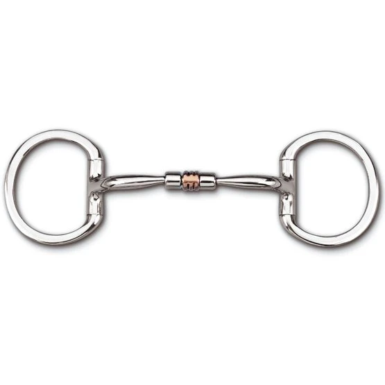 Bei einem Myler-Gebiss ist es wünschenswert, dass auf jeder Seite direkt außerhalb der Lippen ein kleines Stück Gebiss sichtbar ist. Mehr als Sie es gewohnt sind. Das liegt an der U-förmigen Gestaltung des Mundstücks. Das Mundstück kommt um den 1. Backenzahn und um den Mundwinkel herum heraus und der Gebissring sucht sich dann die Wange als Wangenstütze. Dadurch wird das Mundstück des Gebisses besser sichtbar.