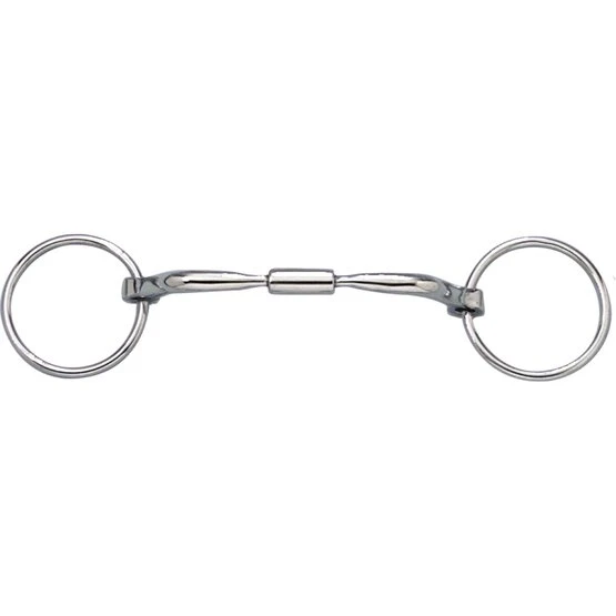 Bei einem Myler-Gebiss ist es wünschenswert, dass auf jeder Seite knapp außerhalb der Lippen ein kleines Stückchen sichtbar ist. Mehr als Sie es gewohnt sind. Dies liegt an der U-förmigen Gestaltung des Mundstücks. Das Mundstück kommt um den 1. Molaren und um den Mundwinkel herum heraus und der Gebissring sucht dann die Wange als Wangenstütze. Dadurch wird das Mundstück des Gebisses besser sichtbar.