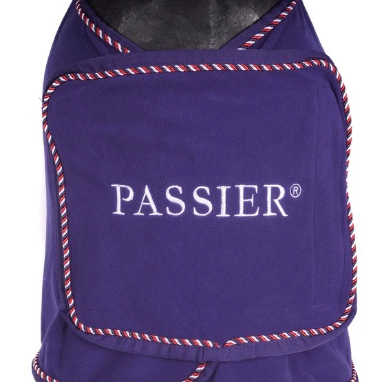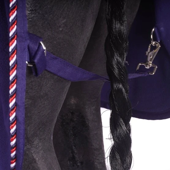 Die besonders edel aussehende Abschwitzdecke mit rot umrandeten Wappen und Schmuckkordel hat eine sehr gute Abschwitzfunktion und wärmt außerdem, da sie aus kuschelig-weichem Fleece gefertigt ist. Die Abschwitzdecke hat vorne eine praktische Schließe mit Drehhaken unter dem Latz und hinten einen tiefen Schweifriemen. Die elegante Decke lässt sich bei 30°C waschen.