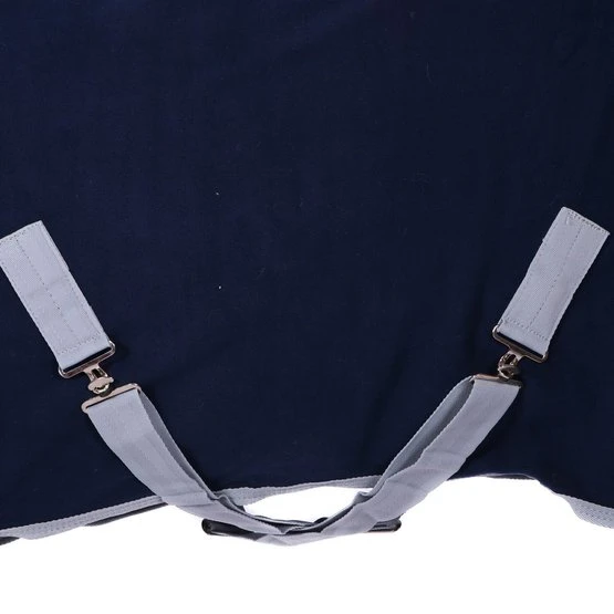 Anatomisch geformte Decke aus 260 g Polyester Fleece. An der Brust ist die Decke mit einer zusätzlichen Polyester Fleece-Schicht gefüttert. Die Decke verfügt über einen verstellbaren Schnallenverschluss an der Brust, ein Widerristpolster aus Fleece und doppelt gestickter Rückennaht. Ferner hat die Decke Kreuzgurte, die sowohl verstellbar als auch abnehmbar sind, und einen abnehmbaren Schweifriemen. Die Decke ist mit Beschlägen aus Zink mit einer silberfarbenen Beschichtung ausgerüstet. Maschinenwaschbar bei 30 °C.