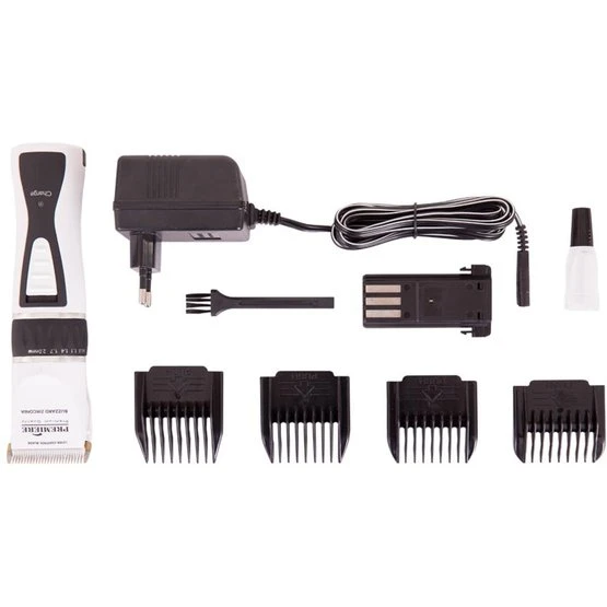 Dieser extra leise, leichte Trimmer (3 Watt) ist ideal für die Toilettenarbeit. Perfekt zum Rasieren von Kopf und Beinen des Pferdes, aber auch für Hunde geeignet. Der Buzzard Zirconia hat eine feststehende Klinge mit Titanbeschichtung und eine bewegliche Keramikklinge. Dieser Scherkopf ist auch separat erhältlich. Ein großes Plus eines Keramikmessers ist die hohe Verschleißfestigkeit, sodass das Messer länger scharf bleibt. Außerdem wird ein Keramikmesser weniger heiß als ein Stahlmesser. Der kabellose Buzzard Zirconia-Trimmer wird mit zwei wiederaufladbaren Ni-MH-Akkus und einem Ladegerät (220-240 V~50 Hz) geliefert. Jede Batterie kann für 60 bis 90 Minuten verwendet werden. Das Aufladen dauert ungefähr 5 Stunden. Ein großer Vorteil von Akku-Trimmer ist die uneingeschränkte Bewegungsfreiheit beim Rasieren. Der Buzzard Zirconia hat einen praktischen Drehring zum Einstellen der Schnittlänge (0,8 bis 2 mm). Außerdem sind vier Aufsteckkämme im Lieferumfang enthalten, mit denen die Schnittlänge um jeweils 3, 6, 9 und 12 mm erhöht werden kann. Der Trimmer wird in einem luxuriösen Koffer inklusive Öl, Reinigungsbürste und Bedienungsanleitung geliefert.