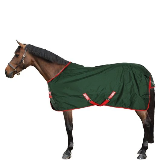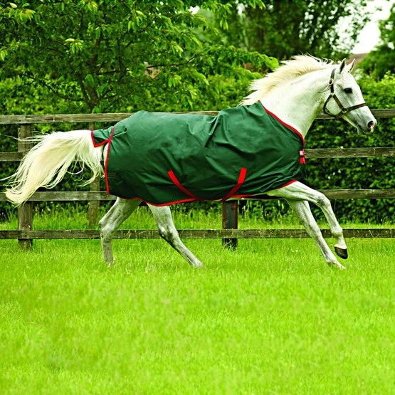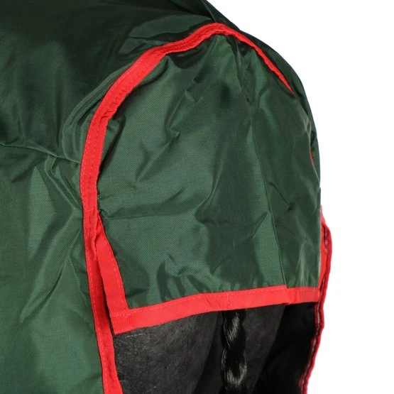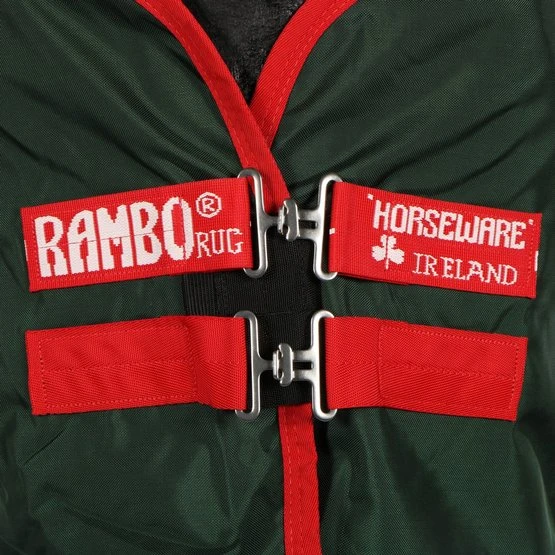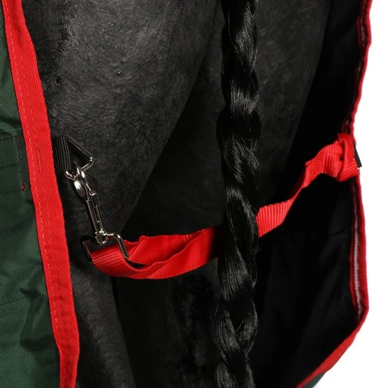 Die Rambo Original Turnout 0gr zeichnet sich durch einen sehr starken Außenstoff aus, der aus wasserdichtem und atmungsaktivem 1000D Ballistic Nylon besteht. Das Innenfutter besteht aus permanentem Polyester, der für ein glänzendes Fell sorgt. Die Innenseite der Decke hat eine permanente antibakterielle Polyesterschicht. Dank dieses Effekts ist das Wachstum von Bakterien, Pilzen und Milben begrenzt. Dank dieser Schicht wird das Risiko von Infektionen und Allergien reduziert. Die Decke hat einen doppelten Haken- / Ösenverschluss auf der Brust, Kreuzgurte, einen Beingurt und eine Schwanzklappe.