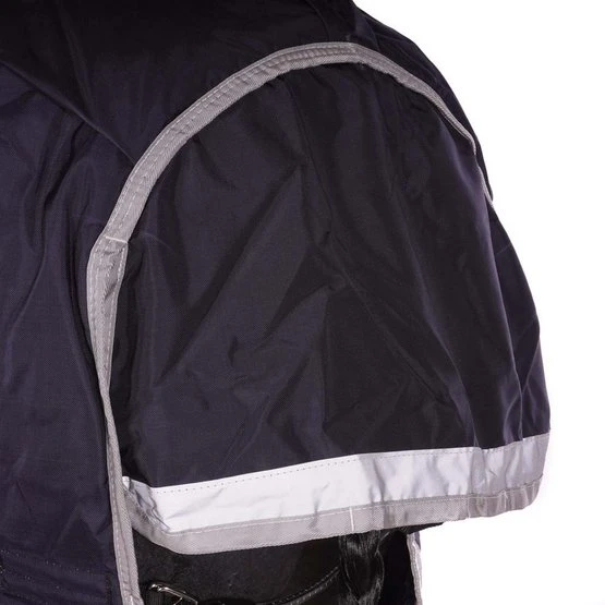 Die Rambo Original Turnout ist wasserdicht und atmungsaktiv. Die Decke ist ausgestattet mit einer einzigartigen Technologie, Außenstoff ist 1000 Denier Ballistic Nylon, die Innenfüllung antistatischer und antibakterieller Polyester. Die Decke ist anatomisch ans Pferd angepasst, wodurch Ihr Pferd mehr Bewegungsfreiheit hat. Die Decke ist mit 200 Gramm gefüttert, hat eine Vorderbeingehfalte, reflektierende Streifen und drei Kreuzgurte.