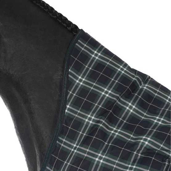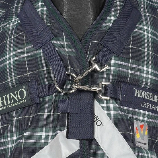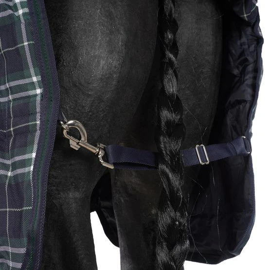 Diese Rhino Wug Weiche besteht aus einem 1000D Polypropylen-Außenmaterial, wodurch die Decke nicht nur wasserdicht ist, sondern auch die atmungsaktive Schicht darunter schützt. Die Decke hat ein antistatisches und antibakterielles Futter und eine Füllung von 450 Gramm. Die Füllung ist mit der Vari-Layer-Technologie ausgestattet, damit die Wärme optimal gespeichert wird, die Decke jedoch nicht zu schwer wird. Die Decke hat einen hoch geschnittenen Hals für eine gute Passform und um Druck auf den Widerrist zu vermeiden. Der V-Front-Verschluss sorgt für optimale Bewegungsfreiheit beim Weiden. Darüber hinaus verfügt die Decke über anatomisch geformte Beinbögen, Reflexionsstreifen, drei Kreuzstreifen und einen Beinriemen aus Kunststoff.