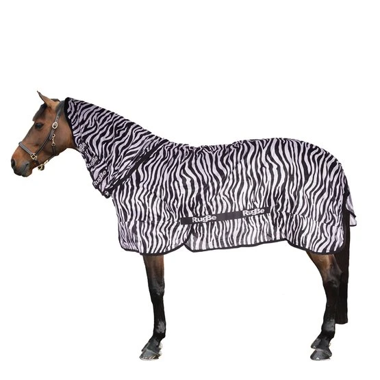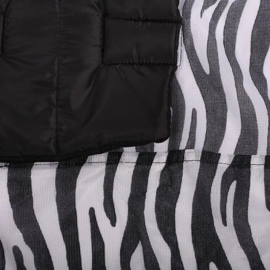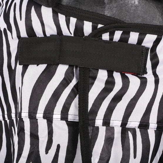 Fliegenzebradecke mit integriertem Halsteil mit Klettverschluss. Engmaschiges, weiches Polyester und der Zebra-Look bietet perfekten Schutz gegen lästige Fliegen, Stech- und Beißinsekten.