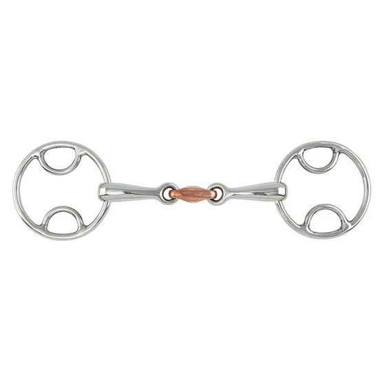 Dieses abgewinkelte Bit ermöglicht eine leichte Hebelwirkung. Der Kupfereinsatz fördert die Speichelproduktion und die Bitakzeptanz.