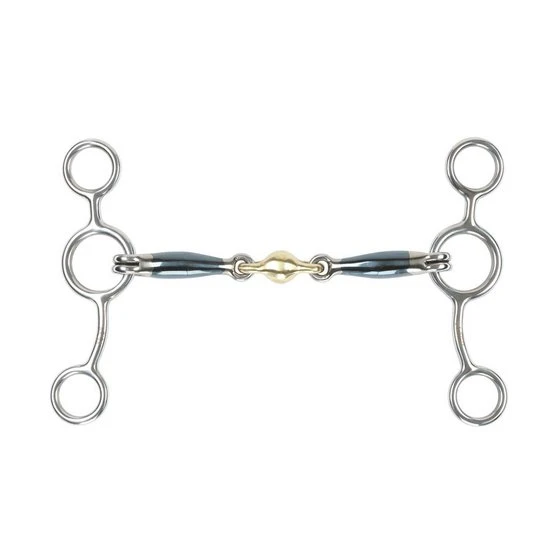 Dieses Gebiss hat eine Hebewirkung und kann so dazu beitragen, dass sich das Pferd nicht mehr auf das Gebiss stützt. Das Anbringen der Zügel an den unteren Ringen erhöht den Schweregrad und sollte daher mit Vorsicht angewendet werden. Mundstückstärke 14mm. Wangenhöhe: 135mm.