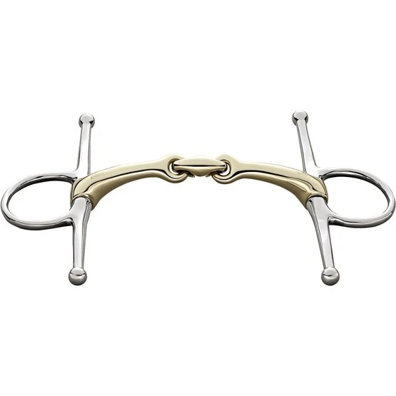 Doppelt gebrochene Dynamic Gag Snaffle. 16 mm dick. 12,5 cm breit. Material Sensogan mit Edelstahlringen. Die ergonomische Form sorgt für eine weiche und gleichmäßige Druckverteilung. Das Mittelteil ist um 45 Grad geneigt, damit das Gebiss optimal auf der Zunge liegt. Das Trensengebiss gibt den Lenkhilfen optimalen Seitenhalt. Ideal für junge Pferde, die noch unsicher in der Lenkung sind oder die dazu neigen, über die Außenschulter zu fallen.