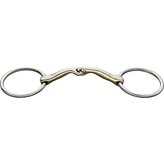 Eingelenkige Wassertrense KK Ultra. 18 mm dick. 12,5 cm breit. Material Sensogan. Regt die Speichelproduktion, die Kautätigkeit und damit die Gebissannahme an. Das Mittelteil ist um 45 Grad geneigt, damit das Gebiss optimal auf der Zunge liegt. Effektive und direkte Wirkung der Zügelhilfen. Geeignet für Pferde, die auf ein normales zwei- oder eingelenkiges Gebiss nicht ausreichend ansprechen und für Pferde, die stark werden oder dazu neigen, sich auf das Gebiss zu stützen.
