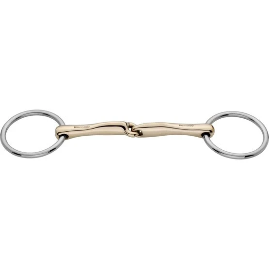 Eingelenkige novocontact Unterlage Wassertrense. 14 mm dick. 11,5 cm breit. Material Sensogan mit Edelstahlringen. Regt Speichelproduktion, Kautätigkeit und Gebissannahme an. Das ovale Mundstück des de novocontact vergrößert die Angriffsfläche auf der Zunge für eine sanfte, klare Wirkung. Geeignet für Pferde, die Schwierigkeiten haben, das Gebiss zu nehmen und daher schnell hinter die Zügel kommen.