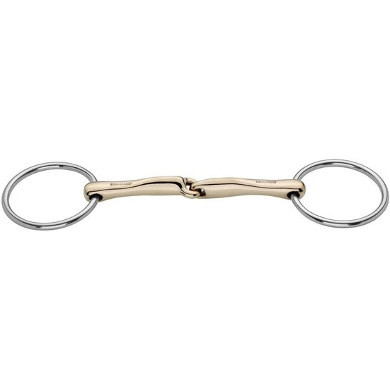 Eingelenkige Novocontact Wassertrense. 12 mm dick. 11,5 cm breit. Material Sensogan mit Edelstahlringen. Regt Speichelproduktion, Kautätigkeit und Gebissannahme an. Das ovale Mundstück des de novocontact vergrößert die Angriffsfläche auf der Zunge für eine sanfte, klare Wirkung. Geeignet für Pferde, die Schwierigkeiten haben, das Gebiss zu nehmen und daher schnell hinter die Zügel kommen.