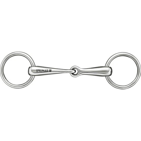 Eingelenkige Wassertrense. 15 mm dick. 9,5 cm breit. Material: Edelstahl. Kleine Ringe.