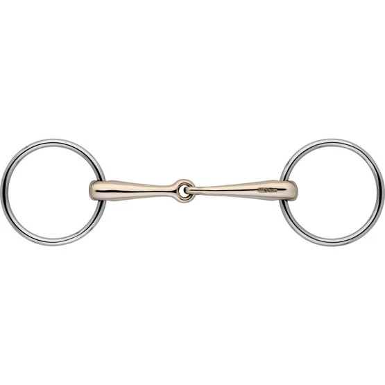 Eingelenkige Wassertrense. 16 mm dick. 12 cm breit. Material Sensogan mit Edelstahlringen. Regt die Speichelproduktion, die Kautätigkeit und damit die Gebissannahme an.
