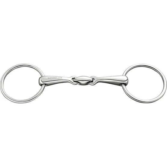 Doppelt gebrochenes Trensengebiss. 18 mm dick. 12,5 cm breit. Material: Edelstahl.