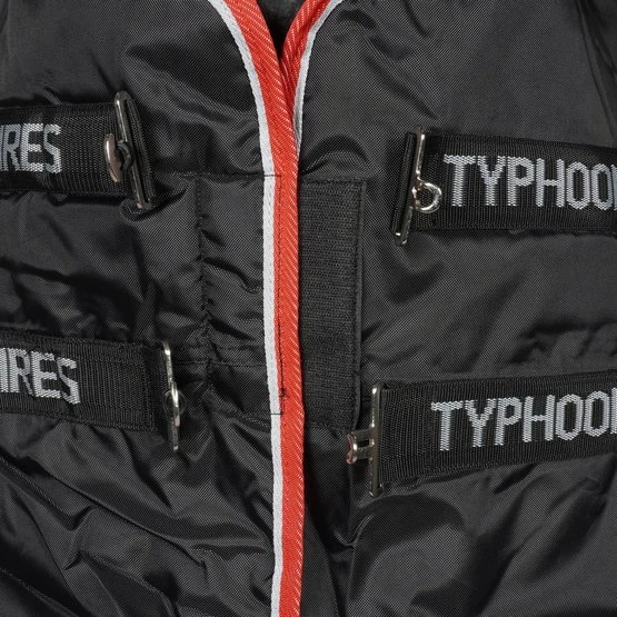 Die unverzichtbare Winterdecke. Wenn es um einfaches Decken geht, sind Typhoon-Deckendecken genau das Richtige. Schnell zu schließende Brustgurte, verstellbare Kreuzgurte und ein Schweifgurt ermöglichen ein schnelles und einfaches An- und Ausziehen. Die Details: Nackenschutz mit Klettverschlüssen. Deckenset mit Brustverschlüssen. Verstellbare Kreuzbegurtung und Schweifriemen. Schweifklappe. Die technischen Daten: 840-Denier-Außenmaterial. 200g Füllung. Wasserdicht. Atmungsaktiv. Verklebte Nähte. ShireTex-Stofftechnologie. DWR – Dauerhaft wasserabweisende Imprägnierung. PFC-frei. Waschmaschinenfest.