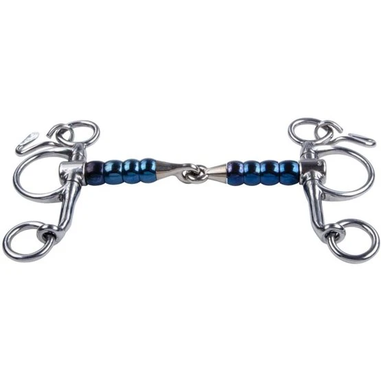 Das Cherry Roller Mundstück besteht aus losen Rollen. Diese Rollen verhindern, dass das Pferd das Gebiss festhält. Darüber hinaus kann es die Zungenaktivität stimulieren, wodurch mehr Speichel produziert wird und die Kiefer entspannen. Dieses Gebiss ist ideal für Pferde, die das Gebiss festhalten oder Schwierigkeiten haben, sich zu konzentrieren.