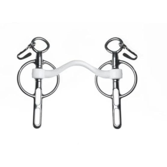 Dieses Mundstück ist ein Stab mit mittlerem Zungenbogen. Der Zungenbogen sorgt für mehr Zungenfreiheit, sodass kein Druck auf die Zunge ausgeübt wird, sondern auf die Schichten verteilt wird. Dadurch ist das Gebiss ideal für Pferde mit empfindlicher Zunge oder abstehenden Pferden. Dieses Gebiss ist nicht für einen unerfahrenen Reiter geeignet.