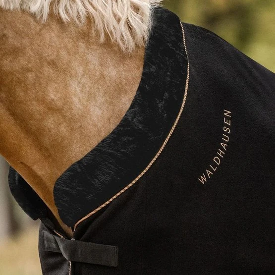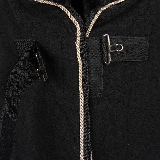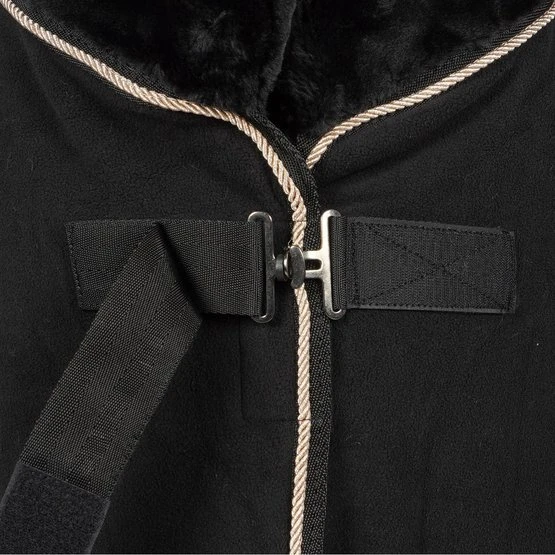 Elegante Fleecedecke mit weichem Kunstpelzkragen und hochwertigem Antipilling-Fleece sorgt für optimale Kühlfunktion. Eine roségoldene oder goldene Kordel, roségoldene oder goldene Stickereien entlang des Ausschnitts sowie roségoldene Verschlüsse sorgen für einen eleganten Auftritt. Abnehmbare Crossover-Träger.