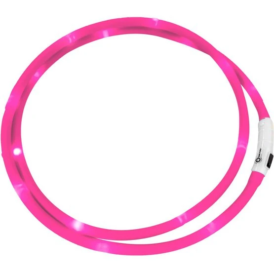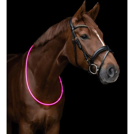 Mit dem Leuchthalsring geht es für Sie und Ihr Pferd jetzt sicher durch Nacht und Nebel. Dank einer Leuchtdauer von bis zu 2 Stunden ist Ihr Pferd auch bei einem längeren Ausritt jederzeit gut sichtbar. Damit der Halsring bei Ihrem Vierbeiner perfekt passt, können Sie das Silikon ganz einfach zurecht schneiden. Bei der Leuchtkraft kann zwischen zwei Blinkmodi und dem Dauerlicht gewählt werden. Beachten Sie dabei aber, dass die Akkuleistung je nach Einstellung variiert.