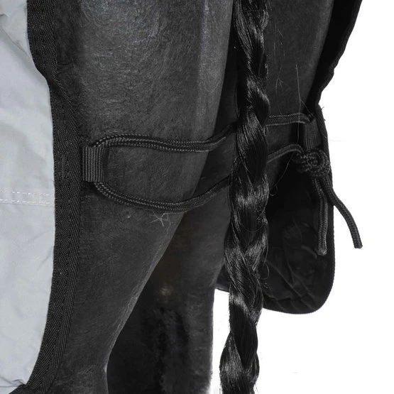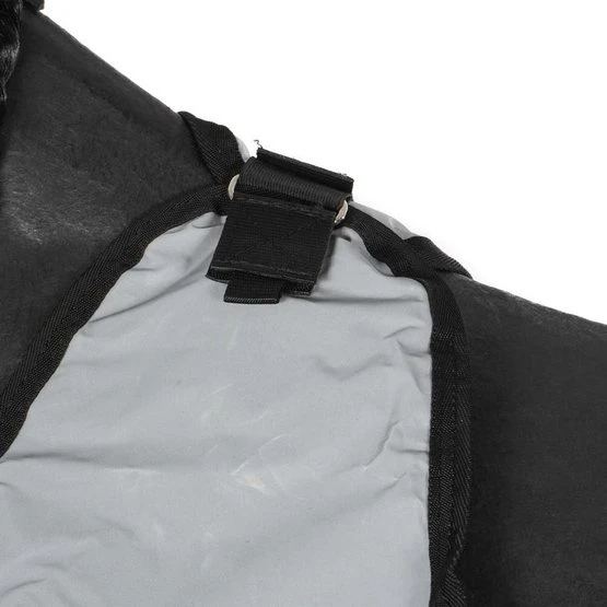 • Berühren Sie die Klebebandverschlüsse am Widerrist und um die Brust, um das An- und Ausziehen zu erleichtern