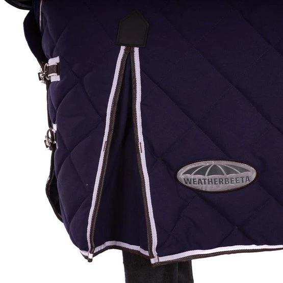 Die WeatherBeeta ComFiTec 1000D Diamantdecke Detach-A-Neck Heavy ist eine stilvolle und langlebige stabile Decke mit einer Außenseite aus 1000-Denier-Polypropylen-Diamantdecke. 210T Polyesterfutter. Der schnelle Verschluss an der Vorderseite bietet maximale Einstellbarkeit. Cozi-Kragen für maximalen Komfort mit geprägter Memory-Foam-Auflage, die sich der Form des Pferdes anpasst und die Widerristdecke anhebt. Traditionelle Seitenfalten für natürliche Bewegung. Mit Schwanzschnur.